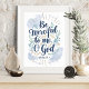 Adicione um toque de serenidade e fé ao seu espaço com esta arte de parede "Seja misericordiosa para mim, Ó Deus", inspirada pelo Salmo 51:1. O design apresenta um roteiro elegante rodeado de folhagem azul e dourada, perfeito para criar uma atmosfera calmante em qualquer sala. Esta trabalho de arte serve como um belo lembrete de oração e compaixão, fazer-a uma peça ideal para a sua casa ou como um presente pensativo.