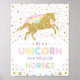Poster Seja um Unicórnio em um Berçário de Menina com Cav