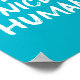 Uma tipografia motivacional cita um impressão de arte que diz Ser um Bom Humano em um design azul-aqua e branco.