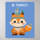Raposa indiana bonita com fundo azul desafia as crianças a "SER VOCÊ!" ou sua mensagem personalizada. decoração do quarto do excelente.