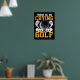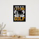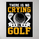 Esta ilustração ousada e assertiva apresenta uma grande bola de golfe com duas cabeças cruzadas de golfe, todas em branco com uma textura angustiada. Uma faixa com três estrelas em cada lado envolve o meio da bola de golfe, indicando "IN" em branco. Acima deste gráfico central, "NÃO HÁ" está em branco, e "CHORANDO" está em uma laranja vibrante. Abaixo da bola de golfe e dos tacos, o "GOLF" aparece de forma destacada na mesma laranja em apuros. O design geral transmite uma mensagem forte e sem disparates sobre o esporte.