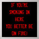 Uma tomada humorística do habitual sinal de não fumar. com a sua inscrição vermelha brilhante num fundo negro, seguramente chama a atenção das pessoas e faz passar o seu ponto.