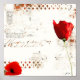 diferentes tonalidades e camadas de branco, com uma haste de design vermelho vivo por baixo, duas grandes papoilas vermelhas pop a partir da peça com as palavras cevada legível no fundo