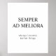 Um poster motivacional com a frase latina "semper ad meliora". Uma frase popular na Roma Antiga, a tradução é "sempre para coisas melhores". Recorda-nos que nos devemos concentrar em avançar no sentido de coisas maiores sem olharmos para trás. Esta citação é muito adequada para situações em que precisamos de abandonar o país, avançar e iniciar um novo capítulo. A inscrição tem uma sensação clássica evocando inscrições públicas romanas e a tradução em inglês está em uma fonte contrastante. O design tipográfico apresenta texto preto sobre fundo branco.