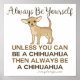 Sempre seja você mesmo. A menos que você possa ser um Chihuahua, então sempre seja um Chihuahua". Este ditado engraçado com um gráfico de desenho de um cão chihuahua-bege/castanho.
