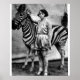 Foto da 1920 de um artista de circo tatuado e uma zebra.