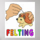 Felting design mostra um par de outras mãos desenhando um ouriço de feltro com a palavra "Felting" abaixo em cores arco-íris. Um design para entusiastas divertido!