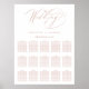 Este moderno gráfico de assentos de branco e rosa de ouro em chic apresenta uma elegante tipografia que lê "o Casamento de" com os nomes da noiva e do noivo, juntamente com os nomes no gráfico de assentos para personalizar. Ajustados até 15 mesas. Desenhada por Susan Coffey.