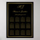 Este elegante quadro de assentos em preto e ouro apresenta um monograma falso de caligrafia em ouro com os nomes de convidados da noiva e do noivo para personalizar com uma falso estrutura em ouro sobre fundo preto. Ajustados até 12 mesas. Desenhada por Susan Coffey.