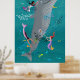 Sereias atentas a uma baleia e limpando o oceano de uma série de posters de Sereia Milla. https://mermaid.fi/