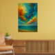 Uma sinfonia de cor e movimento, Tempest Serenade evoca a beleza bruta dos extremos emocionais da natureza. O céu turbulento da pintura - vivo com laranjas flamejantes, vermelhos derretidos e azuis elétricos - ergue-se acima de um mar tranquilo renderizado em pinceladas em camadas de azul-turquesa e turquesa. A linha do horizonte divide o caos da calma, mas a pincelada sugere que eles estão em diálogo, não em oposição.