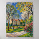 Esta vibrante arte de parede captura um parque sereno num belo primavera. Com as árvores florescendo em tons de verde, amarelo e branco, a cena é enquadrada por uma charmosa e elegante casa ao fundo. As pessoas desfrutam casualmente do dia, correndo ao longo de caminhos iluminados pelo sol ou sentadas em bancos em meio a arbustos florescentes de flores rosa e vermelha. O céu azul claro acrescenta uma sensação de calor e calma, fazer esta peça perfeita para trazer um sentido de relaxamento e beleza da natureza para qualquer sala