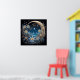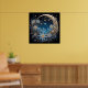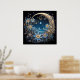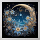 Esta intrincada pintura digital, "Serenidade da Meia-Noite", captura uma paisagem noturna e impressionante. Uma lua crescente e um céu estrelado são enquadrados por ornamentados, girando designs florais em tons de azul e ouro. A cena evoca um senso de calma e beleza mágicas, perfeito para um poster que adiciona um toque etéreo a qualquer sala.