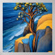 Serenidade do Vento Uma Árvore Solitária Superando o Mar do Azure a partir de Recortes Costeiras Sunlit