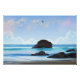 Serenidade, paisagem tranquila com nuvens suaves e uma praia arenosa.