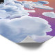 "Serenidade ligada ao céu" retrata quatro skydivers saltando para um mundo de nuvens vibrantes e pufas sob um pôr do sol que respira. A peça captura a emoção do voo e a beleza pacífica da natureza, misturando a pressa da aventura com as cores calmantes do céu.