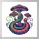 Encaixe a sua decoração com o impressão de Encantamento de Serpentine Mushroom. Esta peça apresenta cogumelos entrelaçados com uma serpente colorida, misturando fantasia e natureza em um design cativante e místico. Download: Este arquivo de design também está disponível para download instantâneo.