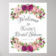 Lindo sinal de boas-vindas de chá de noiva floral em aquarela rosa e marsala. Fácil de personalizar com seu nome e data do chá.