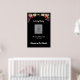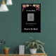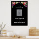 O poster de Memorial para o funeral ou a celebração do evento de vida tem uma fronteira floral de topo e a escrita diz "In Loving Memory" e "Forever in Our Hearts". Edite todo o texto conforme necessário e altere o espaço reservado para fotos da pessoa que está sendo honrada. O fundo preto também pode ser alterado para outra cor, se quiser. O poster pode ser montado num conselho e colocado num calcanhar no evento, ou pendurado numa parede ou porta.