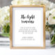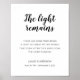 Este elegante sinal memorial, com a tocante citação "A luz permanece" é uma maneira bonita de lembrar e homenagear o ente querido na reunião de Celebração da Vida. Personalize com o seu texto na parte inferior.