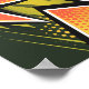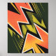 Uma imagem vibrante inspirada em pop, com setas grandes e ousadas em laranja, amarelo e preto, cortando a estrutura diagonalmente. O fundo é cheio de pontos de meio tom e linhas agudas em tons verdes e negros contrastantes, acrescentando um sentido de movimento e energia. O uso de cores marcantes e formas dinâmicas evoca um estilo retro de quadrinhos.