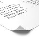 O gráfico de assentos de hóspedes em preto clássico e branco apresenta "seu assento aguarda" no topo da lista com letras de escrita manuscrita caprichosa, com suas atribuições de mesa de hóspedes por baixo, organizadas alfabeticamente em quatro colunas.