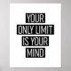 Seu Único Limite É A Sua Mente, A Malhação Motivacional Preta E Branca Dizendo Tipografia *Personalizá-la! Escolha a sua própria Cor de Fundo Impressa!