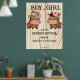 O gênero da vaqueira Cowboy revela o cavalo bebê bonitinho da festa em modelo personalizado de boas-vindas. Bebê cowboy de cavalo e bebê cowgirl de cavalo com flores, fundo de madeira, para pessoas carinhosas de cavalo.