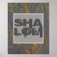 Esta poster de citação tem texto Shalom para decoração de arte em parede em um estilo ousado, no estilo contemporâneo, amarelo e desenho abstrato de cinza. Arte original Ann Powell