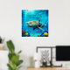 Experience an emotional underwater encounter with this detailed, stylized shark art print. The artwork showcases the ocean's apex predator gliding through sun-drenched deep blue light, contrasted by vibrant, colorful coral and tropical fish. This captivating scene masterfully blends power with the serene beauty of the marine environment, making it a compelling piece of ocean-themed decor. This truly unique design began with advanced AI generation and was then meticulously edited by a skilled artist to enhance its uniqueness, texture, and creative depth. This process ensures a distinctive, high-quality marine art print. Perfect for anyone who loves the ocean's mystery and power. Place your order today and embrace the joy of owning this exceptional piece!