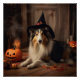 Pôster Shetland Sheepdog Pumpkins Halloween Assustado
