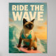 Make a bold splash on your wall with this stunning poster of the Siamese cat surfing a crystal-blue wave in a fabulous bikini and sunglasses. Perfect for beach lovers, surf addicts, and glam cat moms, this vibrant design brings tropical energy and feline flair to your room, office, or boutique space.
