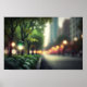 Poster Sidewalk da cidade turva iluminada pelo Bokeh