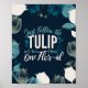 Design de tipografia de humor bonito, "Apenas Siga a Tulip All for One & One Flor-al", e a ilustração de tulipa em paleta de cores preto e azul. Presente perfeito para amante de flores e natureza.