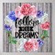 Peça personalizada com um design de farnhouse, com florais vibrantes e fundo de madeira de galhardete. Adição perfeita à maioria das decorações.
