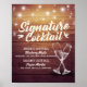 Signature Cocktail Drink Menu Wedding Decor Poster Modelo - Elegante Lettering Script, Vintage Champagne Glass e String Lights no Fundo Rustic Wood. Um Design Perfeito Para O Seu Grande Dia! Todo Estilo De Texto, Cores, Tamanhos Podem Ser Modificados Para Ajustado Das Suas Necessidades.