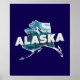 Poster de Wall art apresenta uma silhueta cênica retrorativa do estado do Alaska sobre um fundo azul escuro (que pode ser removido ou personalizado para uma cor diferente da sua escolha)