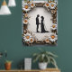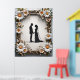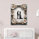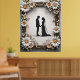 Silhueta elegante de um casal de casamento de mãos dadas, emoldurada com uma borda decorativa adornada com belas margaridas. Perfeito para temas de amor, casamentos e comemorações românticas.