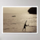 silhueta de um garoto fazendo rodas em uma praia de caribe no pôr do sol
