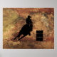 Pôster Silhueta de Barrel Racing Girl em uma textura verd