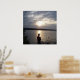 Pôster Silhueta do homem pescando no pôr do sol