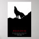 Poster Silhueta do Lobo Negro e Branco em uma colina