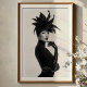 Faça uma declaração impressionante com este impressão de arte branco e preto cativante, uma verdadeira obra-prima da moda de vanguarda e expressão artística. Este retrato frontal convincente apresenta uma mulher de intenso prazer, coroada com um extraordinário chapéu preto escultural que se espalha para fora como uma forma dramática, abstrato, complementada por um sutil véu facial. Vestida em uma camisola preta elegante, cheia de luvas elegantes de couro e brincos ousados, seu traje é um estudo sobre minimalismo sofisticado. Sua pele pálida, lábios pretos escarnecidos e um olhar piercing criam um contraste mesmerizante contra seu conjunto escuro e o fundo branco pristino, enfatizando sua presença poderosa e direta. Com uma expressão confiante e enigmática, esta trabalho de arte incorpora uma feroz, misteriosa e inegavelmente elegância chica. Perfeito para espaços modernos, estúdios de moda, ou qualquer decoração que busque um toque de sofisticação única, artista ousada, e uma narrativa visual verdadeiramente inesquecível.