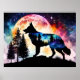 silhueta de German shepherd na montanha em frente a uma lua de cheio colorida AI Arte gerada por minx267