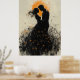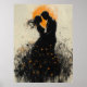 Poster Silhueta Romântica com Brilho de Ouro e Flores Sel