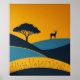 Com formas minimalistas e tons quentes, esta obra de arte retrata um cervo solitário em frente a uma árvore em colinas suaves ao crepúsculo. Uma cena elegante e calmante — perfeita para espaços modernos que buscam serenidade e beleza natural.