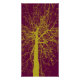 Uma silhueta de uma árvore no inverno em cores amarelas e vermelhas profundas.