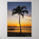 Poster Silhuette of one Palm Tree by a Red Orange Sunset