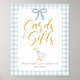Direct guests with charm using this Silly Goose Is Soon to Be on the Loose Cards and Gifts table sign. Featuring a soft blue gingham plaid background and an adorable white goose with a sweet blue coquette bow, this baby shower table sign adds a polished and coordinated touch to your baby boy shower decor. Perfect for styling your gift table, this sign pairs beautifully with matching welcome signs, guest books, diaper raffle cards, and game signage from the Silly Goose baby shower event suite. Designed for a goose themed baby shower, blue gingham baby shower, and personalized baby shower decor, it helps create a cohesive and professionally styled celebration from entrance to exit.
