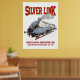 Silver Link - LNER Class A4 2509 Steam Train Loco. This vintage poster features the iconic Silver Link steam locomotive, a symbol of the London and North Eastern Railway. Built between 1935 and 1963, it showcases the powerful A4 class engine. The design highlights its sleek, streamlined body, evoking nostalgia for the golden age of British rail travel.